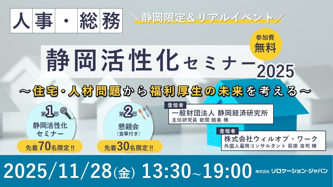 静岡県の企業が抱える「住宅」「人材」の課題に、今こそ一緒に向き合いませんか?